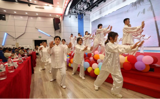 在汇报展演环节,街舞班学员以青春四溢、激情满满的街舞开场;尤克里里学员一曲《自娱自乐》弹唱,明快动听,字字动人;中国舞班的同学们的舞蹈《烟雨江南》《小船谣》,典雅灵动;竹笛班的学员演奏的《痴情冢》,宛转悠扬;二胡班的学员带来二胡串烧,《小星星》《小燕子》《葫芦娃》《鸿雁》等曲子,让全场不禁双手打起节奏唱起来;古琴班的学员表演的《明远·蜀音》,将茶艺展示、诗词朗诵相结合,婉转绵延;吉他班学员弹唱的《刻在我心底的名字》,唱出了心中热爱;40余名师生带来的《二十四式太极拳》,在一招一式之间迸发内心力量;声乐班学员以一曲《映山红》,婉转悠长,唱出百年党史;第八期、第九期课程的摄影、陶艺、油画、中国画、硬笔书法、软笔书法等优秀作品也进行了现场展示。