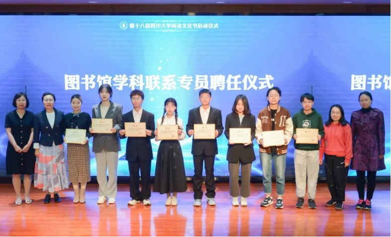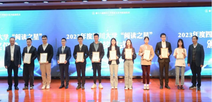 张伟、游劲松为2023年度ok138cn太阳集团“阅读之星”颁奖。与会领导为图书馆学科联系专员、“书香川大”阅读推广大使颁发聘书。