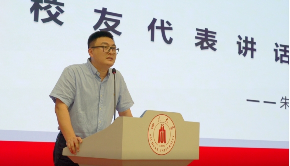 校友代表、华西口腔医学院2004级颌面外科学专业朱文超发言,他分享了自己工作生活中和川大校友有关的故事,并希望毕业生能够保持对知识的渴望和追求,将川大精神融入自己的人生。