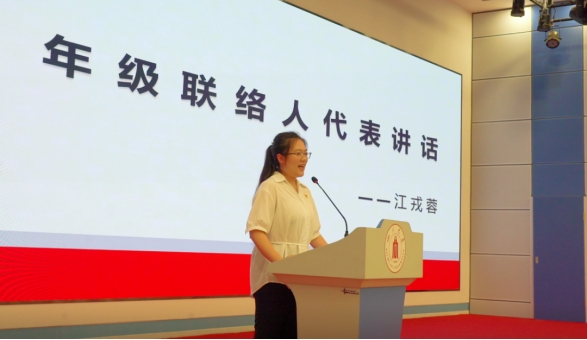 化学学院的江戎蓉同学代表2023届校友年级联络人进行发言,她表达了对母校的感激与不舍。作为校友年级联络人,她将与各位校友工作者共同努力,关心母校的建设与发展,热心校友工作,服务母校和校友,为母校贡献自己的力量。