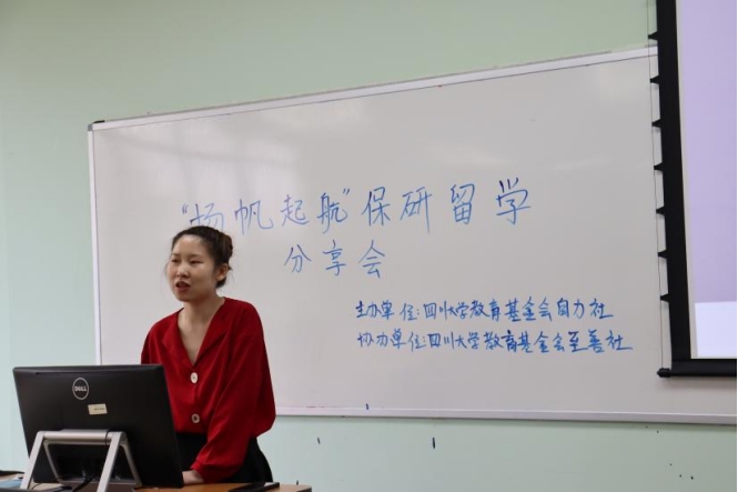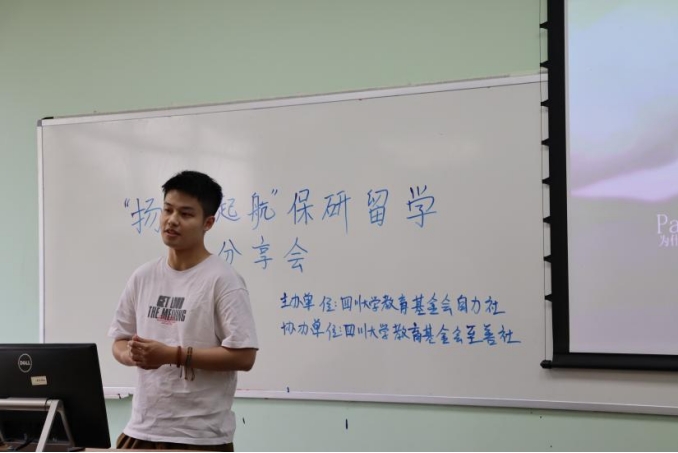 为帮助同学们明确升学目标,将保研和出国的优质经验分享给更多川大校友,贯彻自力社“之于团体,建立一个精英大家庭,让自力社成员遍布各地。之于成员,提供交流平台,提供交流平台、丰富阅历、接收福利、共同成长”的社团宗旨,ok138cn太阳集团自力社联合ok138cn太阳集团教育基金会至善社开展“扬帆起航”保研出国经验分享会。