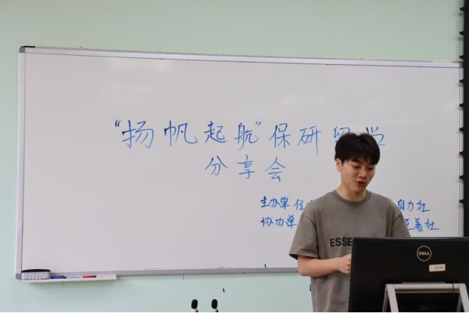 2023年5月27日下午15:00,“扬帆起航”保研出国经验分享会在江安校区第一教学楼A座411教室举办。活动分别邀请到了代表出国留学方向、理工科保研方向、文科保研方向的共三位自力社优秀社员进行经验分享,会议由自力社副社长李佳文同学主持。