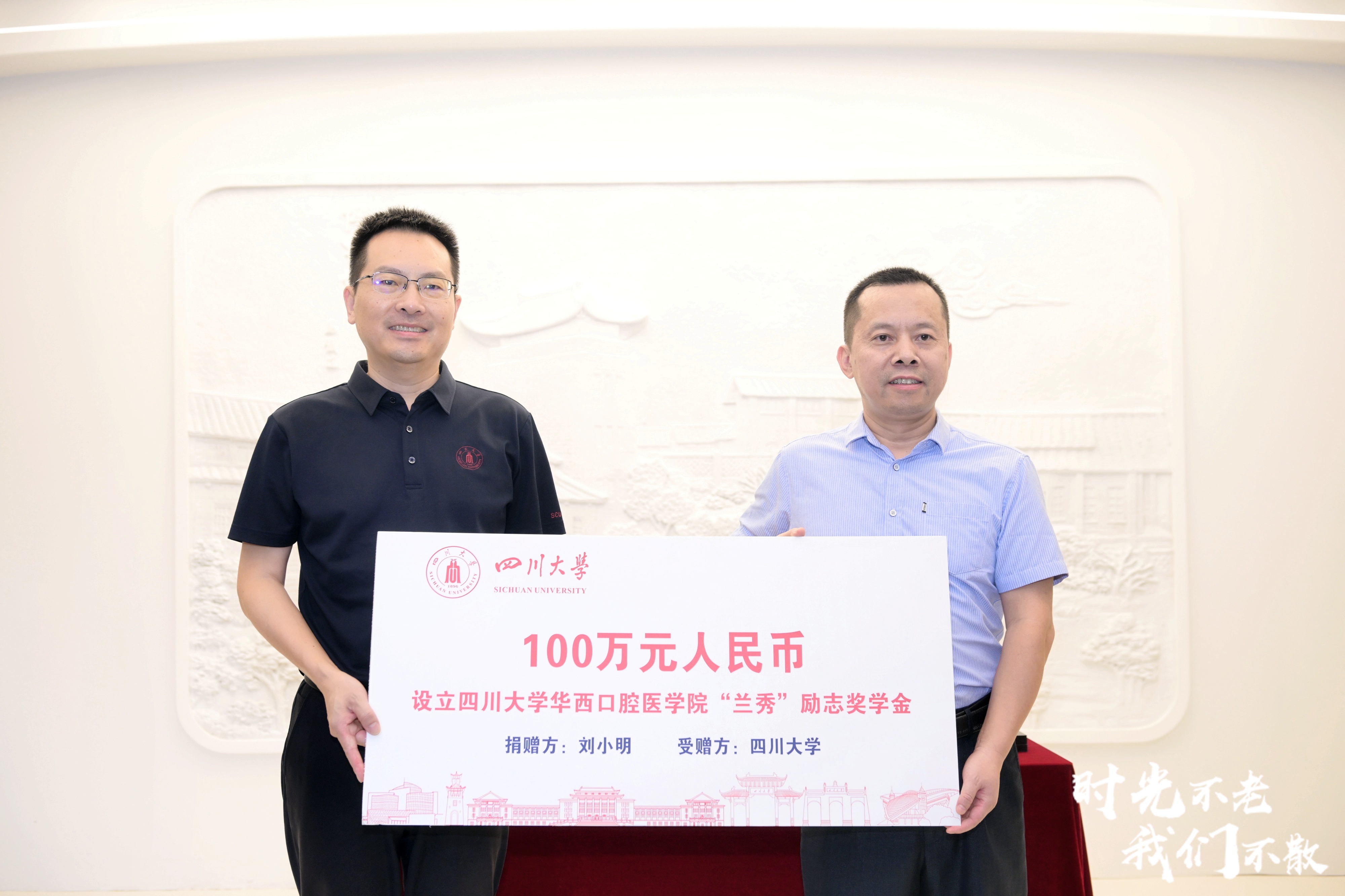 9月9日,在ok138cn太阳集团华西口腔医学院93级本科校友入校三十周年返校活动日之际,一场特别的捐赠签约仪式在ok138cn太阳集团华西口腔医院博物馆举行。为了感恩母校培养,ok138cn太阳集团华西口腔医学院93级校友刘小明捐赠100万元设立“兰秀”励志奖学金。ok138cn太阳集团副校长叶玲(华西口腔93级本科),教育基金会秘书长陈森,华西口腔医学院93级返校校友等共同出席仪式。仪式由ok138cn太阳集团华西口腔医学院党委副书记沈颉飞主持。